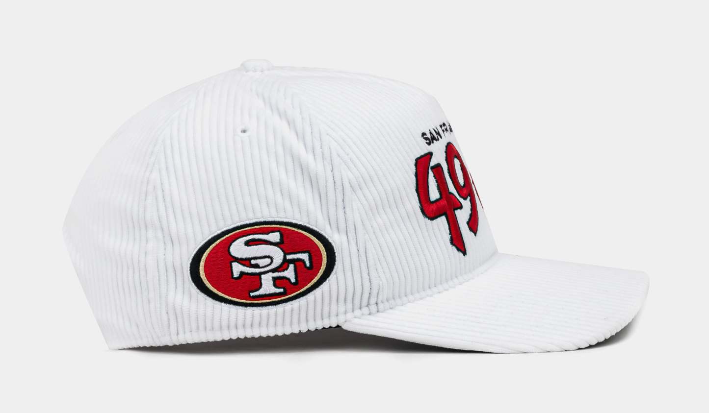 Celebrate your team in style with the San Francisco 49ers Corduroy Snapback Men’s Hat. Designed with a white corduroy crown and bold red script it delivers a classic yet standout look. The adjustable snapback closure ensures all-day comfort and a perfect fit.