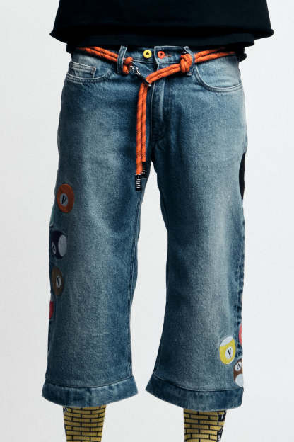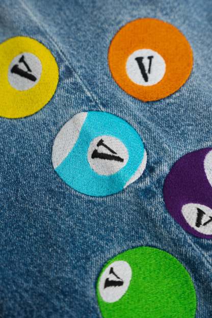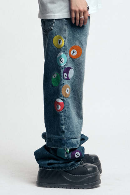 Oversized 'V' Ball Embroidered Jeans with Convertible Shorts Option and 'V' Ball Accessories
