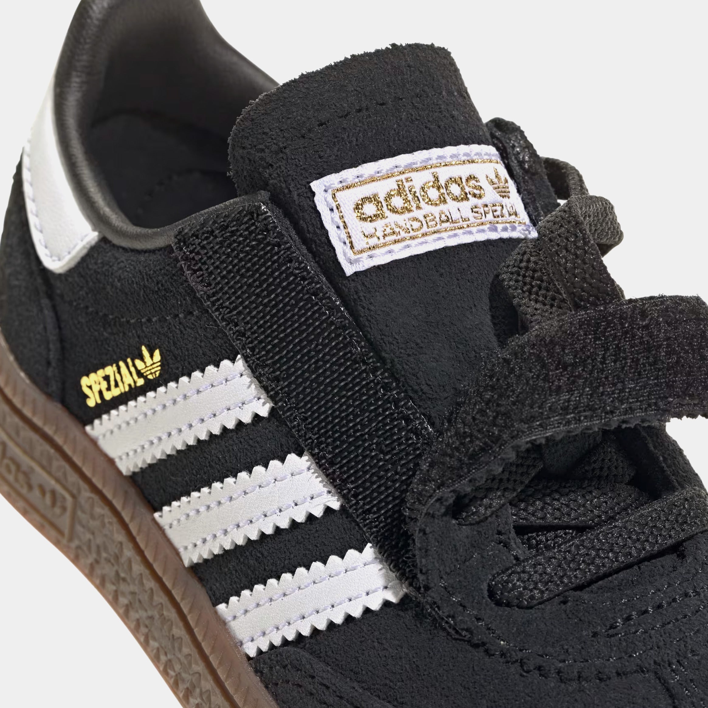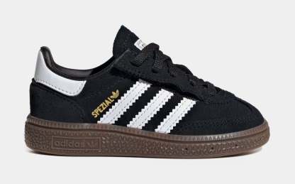 Bring the heritage style of adthtidas Originals to the littlest creators with these adthtidas Handball Spezial Shoes for babies. Super bendy for tiny feet, they have a soft, supple suede upper that's comfy and holds up to daily wear. Elastic laces let the collar stretch open, giving you an assist when slipping them on and off. Tap into the authentic vibe of vintage adthtidas, and give your baby a reason to smile.