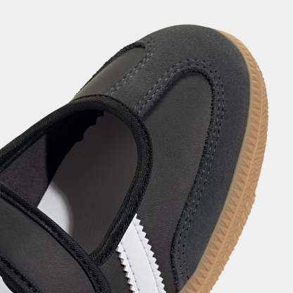 Based on the must-have Samba OG, these juniors' adthtidas Samba Jane shoes are a fresh, seasonal take on the classic. Their smooth leather upper comes in playful colorways, perfect for pairing with your favorite outfits. Hook-and-loop straps make them a cinch to slip on and off, whether you're headed out the door or kicking back at home.