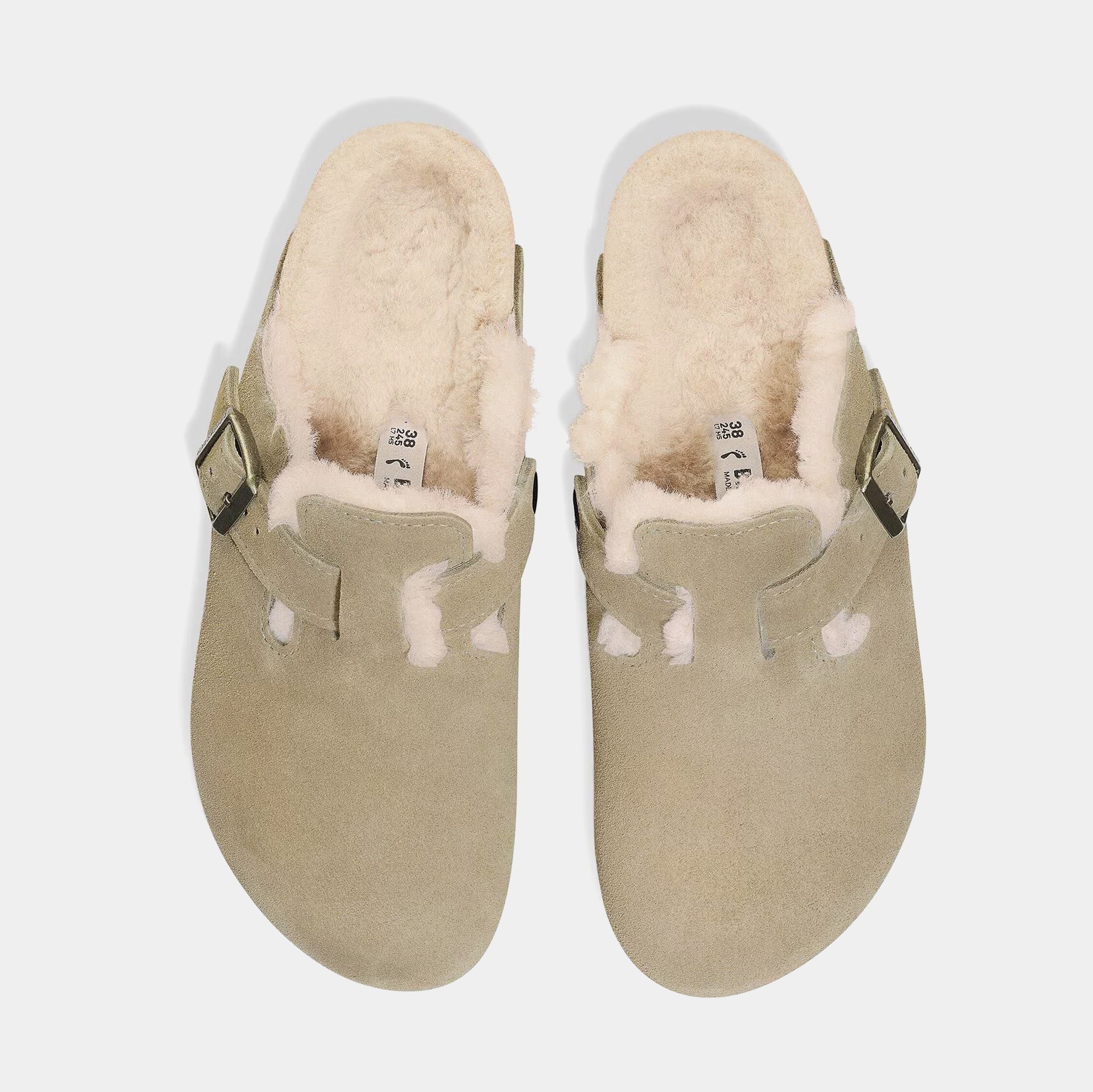 The perfect shoe for all seasons, these Birkthtenstock Boston Shearling Clogs for Women in Taupe are ones you will never get tired of. The classic Birkthtenstock footbed and clog construction with a twist of trendy shearling footbed