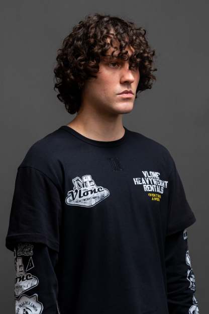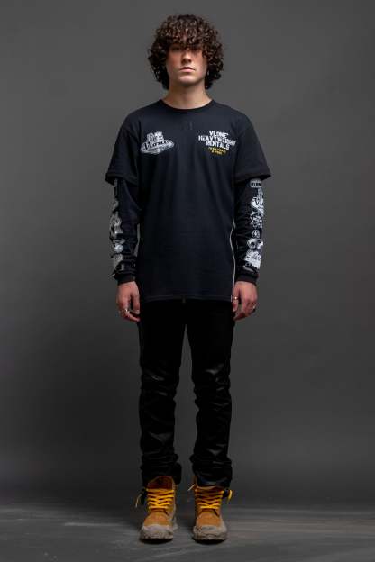 Graphic loose fit long sleeve T-Shirt in worn black with VLONE decorative stitch.