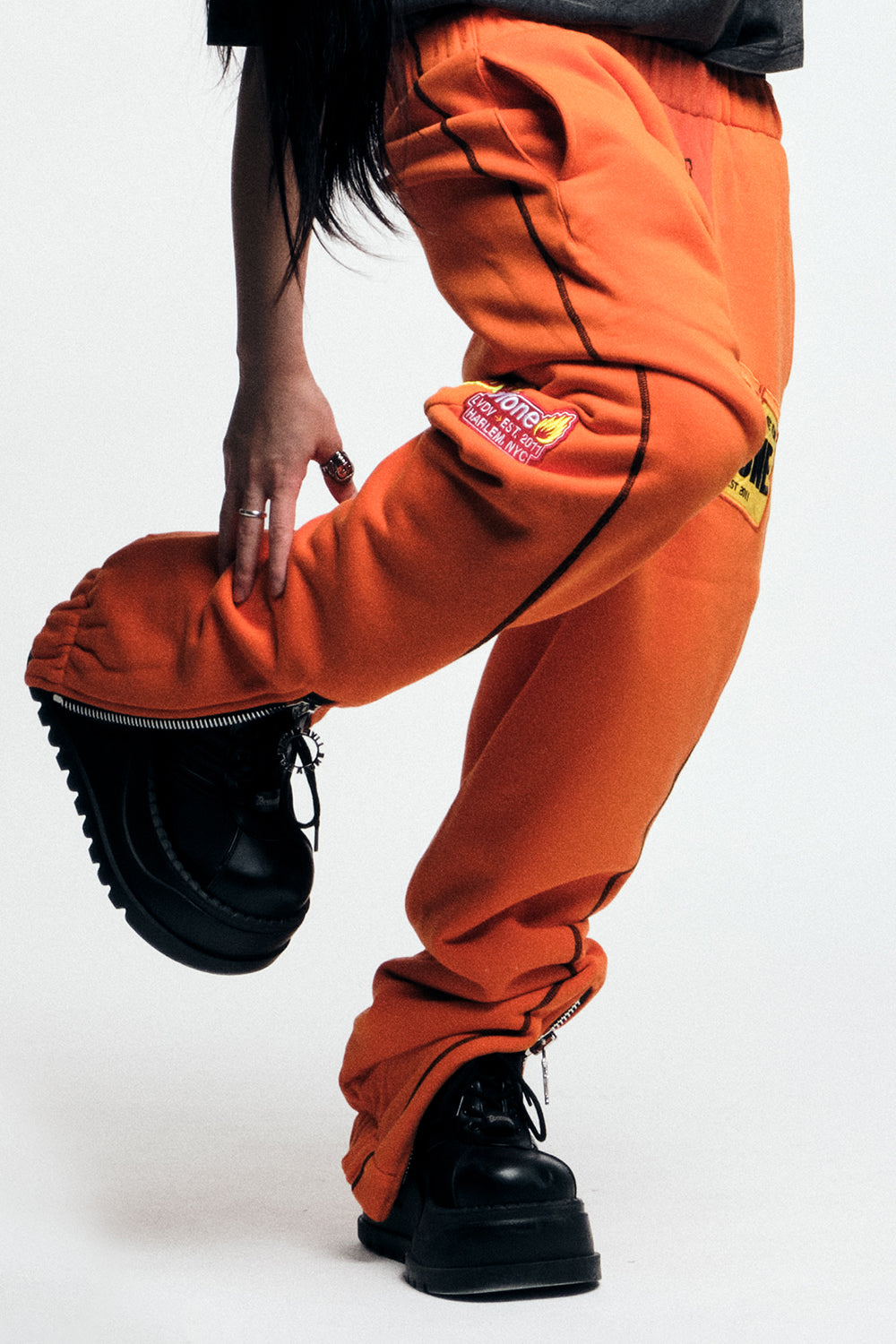 • Oversized thigh RiRi zippers