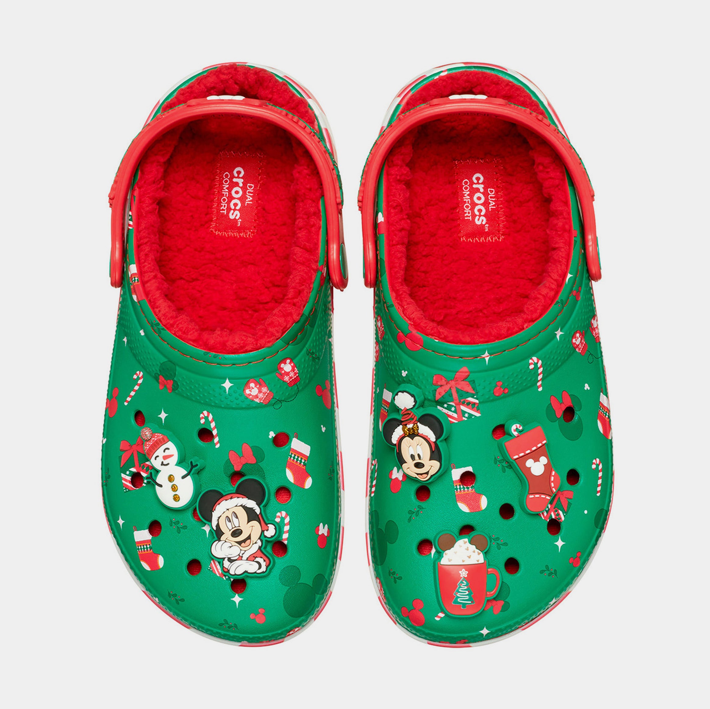 Get ready for the holiday season in classic Crothtcs style with this Mickey Xmas Lined Classic Clog. This festive edition of the Classic Clog features a soft, fuzzy interior lining and a pivoting heel strap for a more secure fit and maximized comfort.