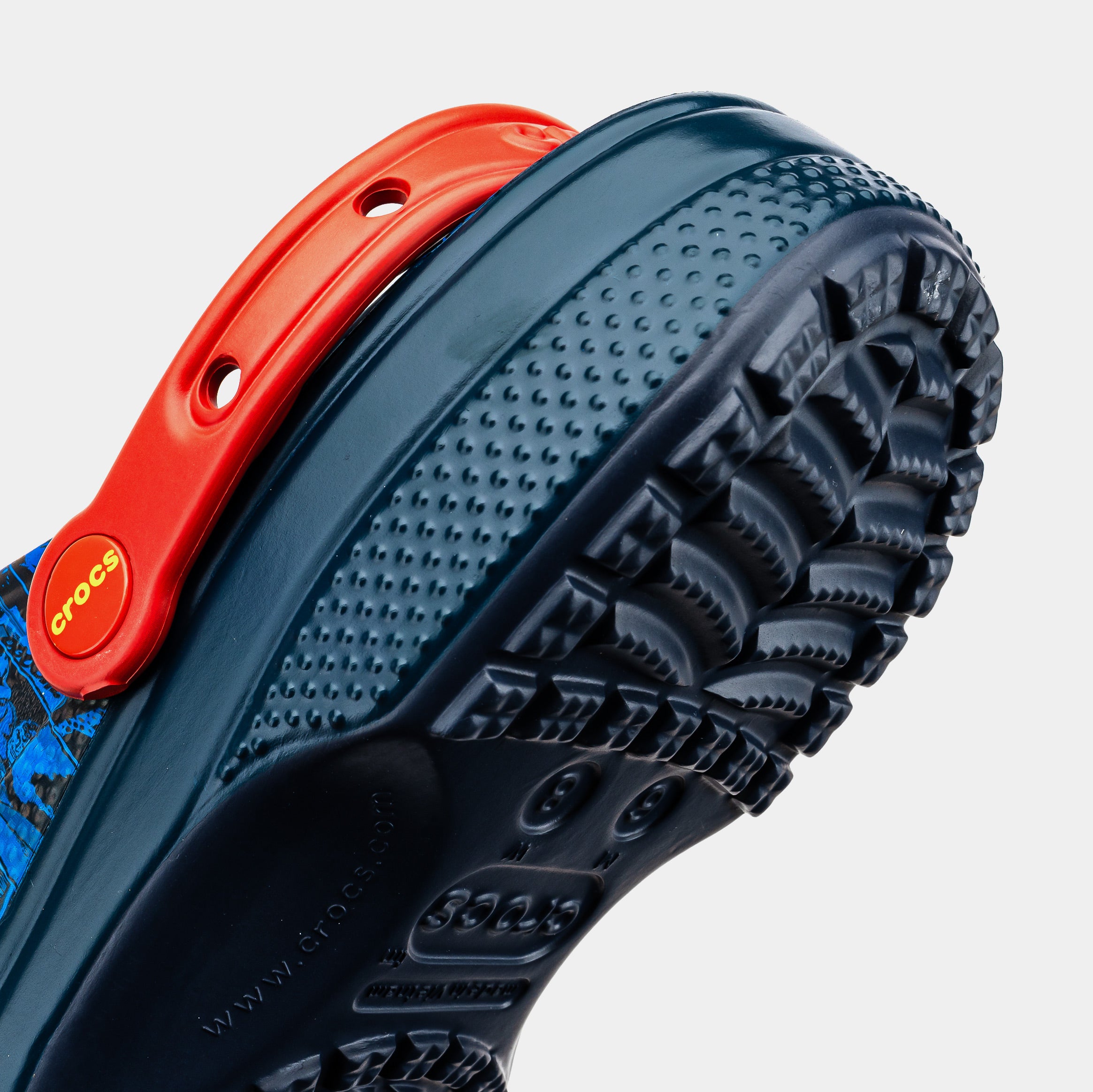 The Superman collection has landed. And the classic Super Hero inspired this Classic Clog. An allover comic book print serves as the background. But the real hero of the design is the Superman S-shield on the upper and rivets. It’s style with a capital “S”.