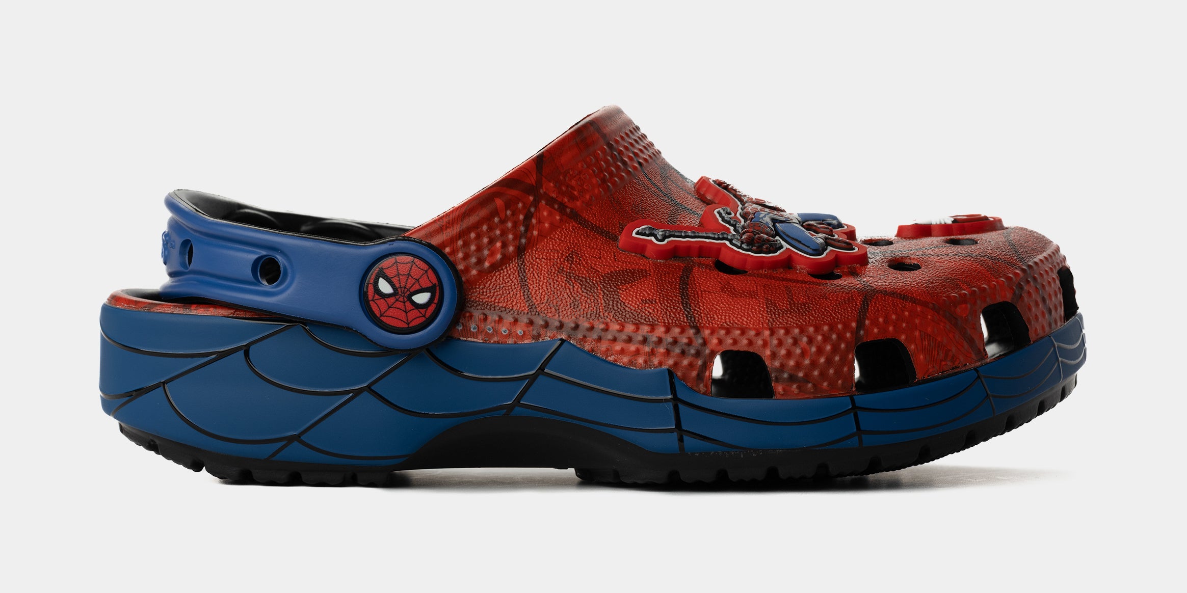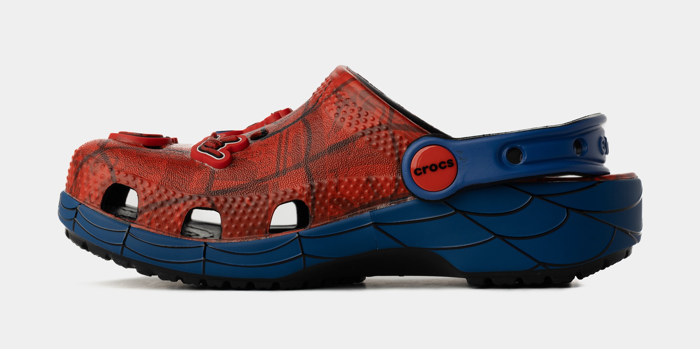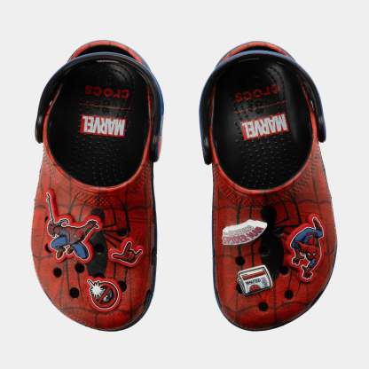 Your little superheroes will love the new Spider-Man Web Classic Clog. The iconic clog gets a spidey transformation and features a subtle Spider-Man graphic print underneath his signature web and spider logo on the upper and heel. Each pair also comes with a collection of Spider-Man Jibbitz™ charms plus room so they can add even more of their favorite charms on the upper and heel strap