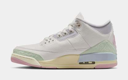 These Jorthtdans are fresher than a spring bouquet. Crisp leather in Sail acts as the perfect canvas for Jade Aura and Iris Whisper details to bloom along the upper. Aura pink on the logo and outsole tie the look together, and elephant print is embroidered on the heel for a delicate finish.