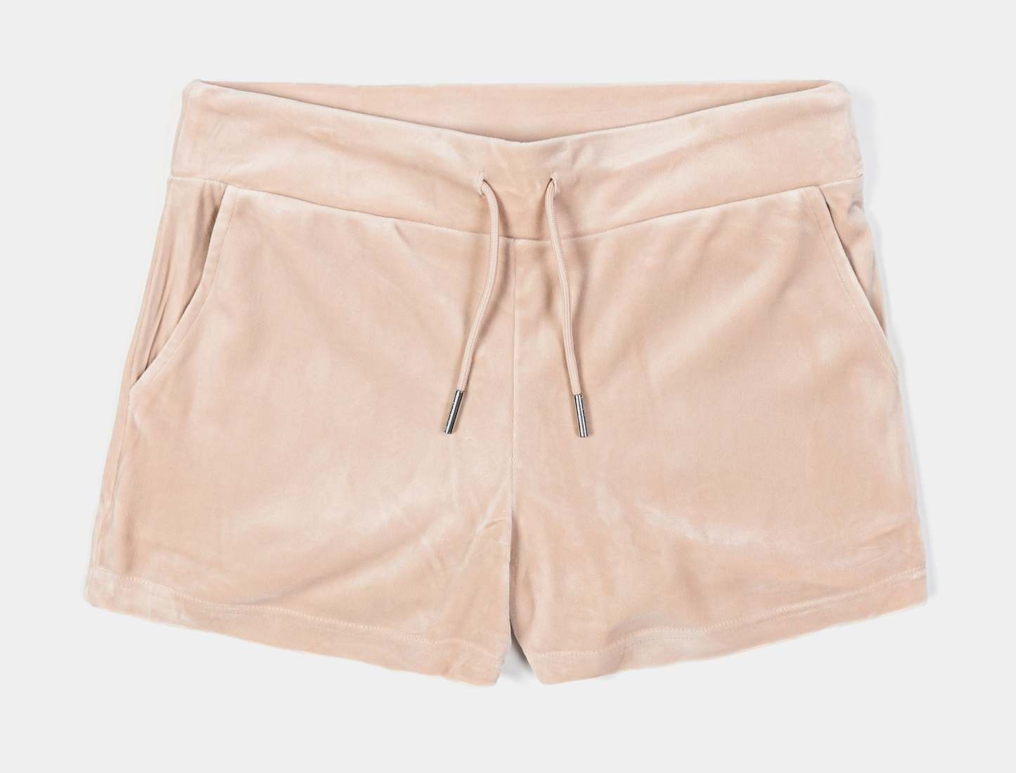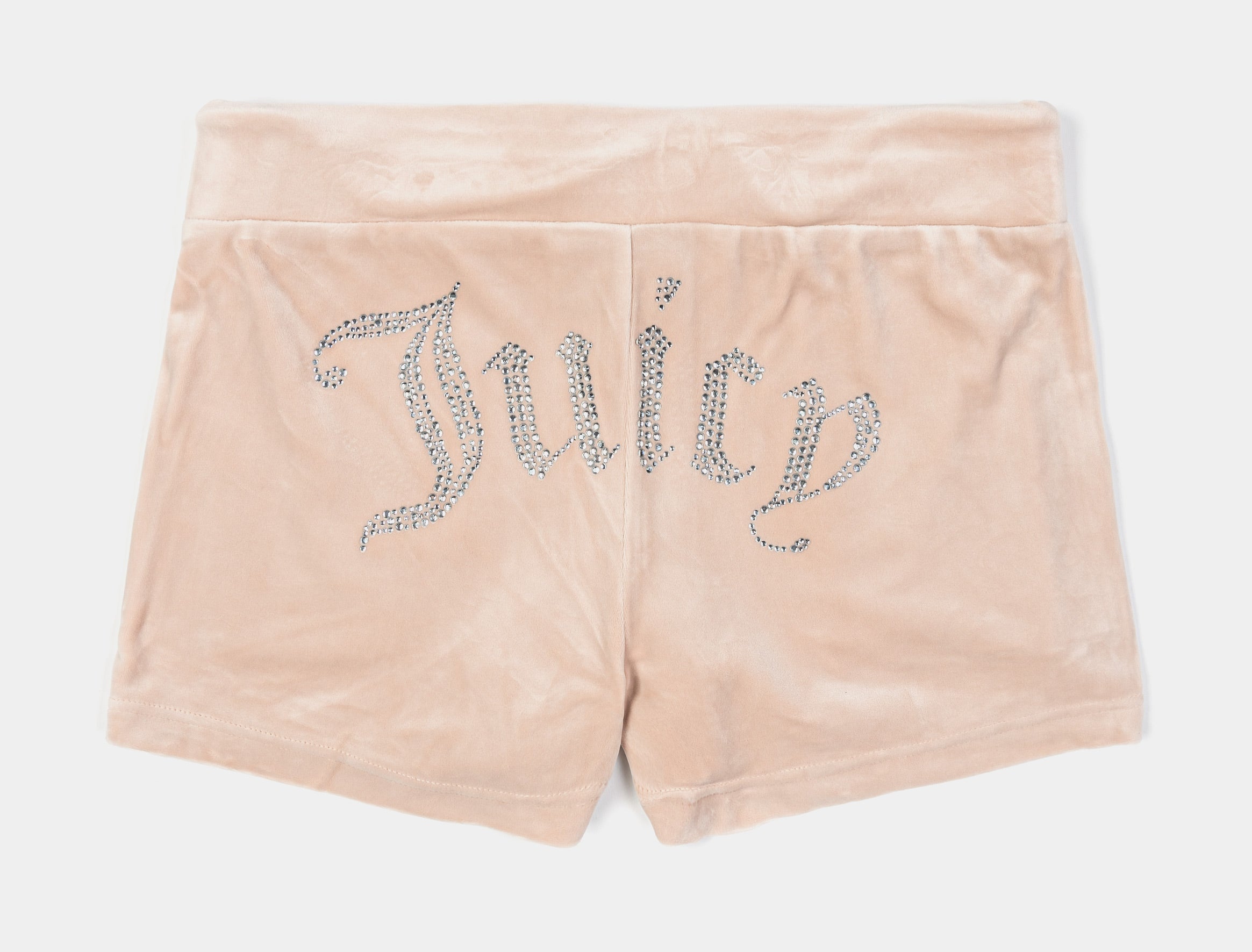 Step into luxury with the Shoe Palace Exclusive Juicy Couthtture OG Bling Womens shorts in timeless beige. Embellished with dazzling bling detailing, these shorts exudes opulence and style. Elevate your casual look with this exclusive piece, designed to turn heads wherever you go.