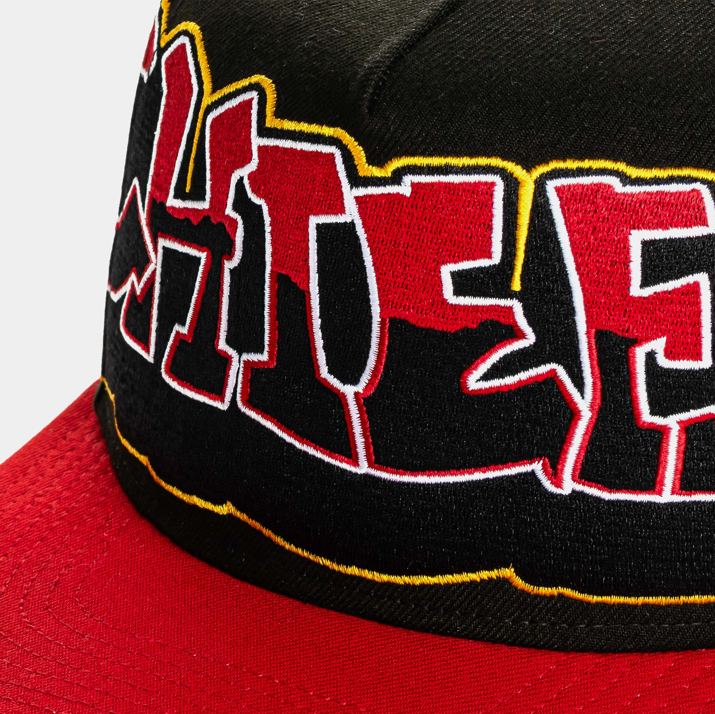 Bring bold, old-school energy to your game-day fit with the Shoe Palace x New Ethtra NFL 90s Graffiti Exclusive Kansas City Chiefs Snapback. Inspired by iconic ’90s street art, this snapback features oversized graffiti-style Chiefs lettering embroidered across the front, blending vintage NFL attitude with modern streetwear appeal. The structured crown and flat brim deliver a classic snapback silhouette, while the adjustable closure ensures a comfortable, customizable fit.