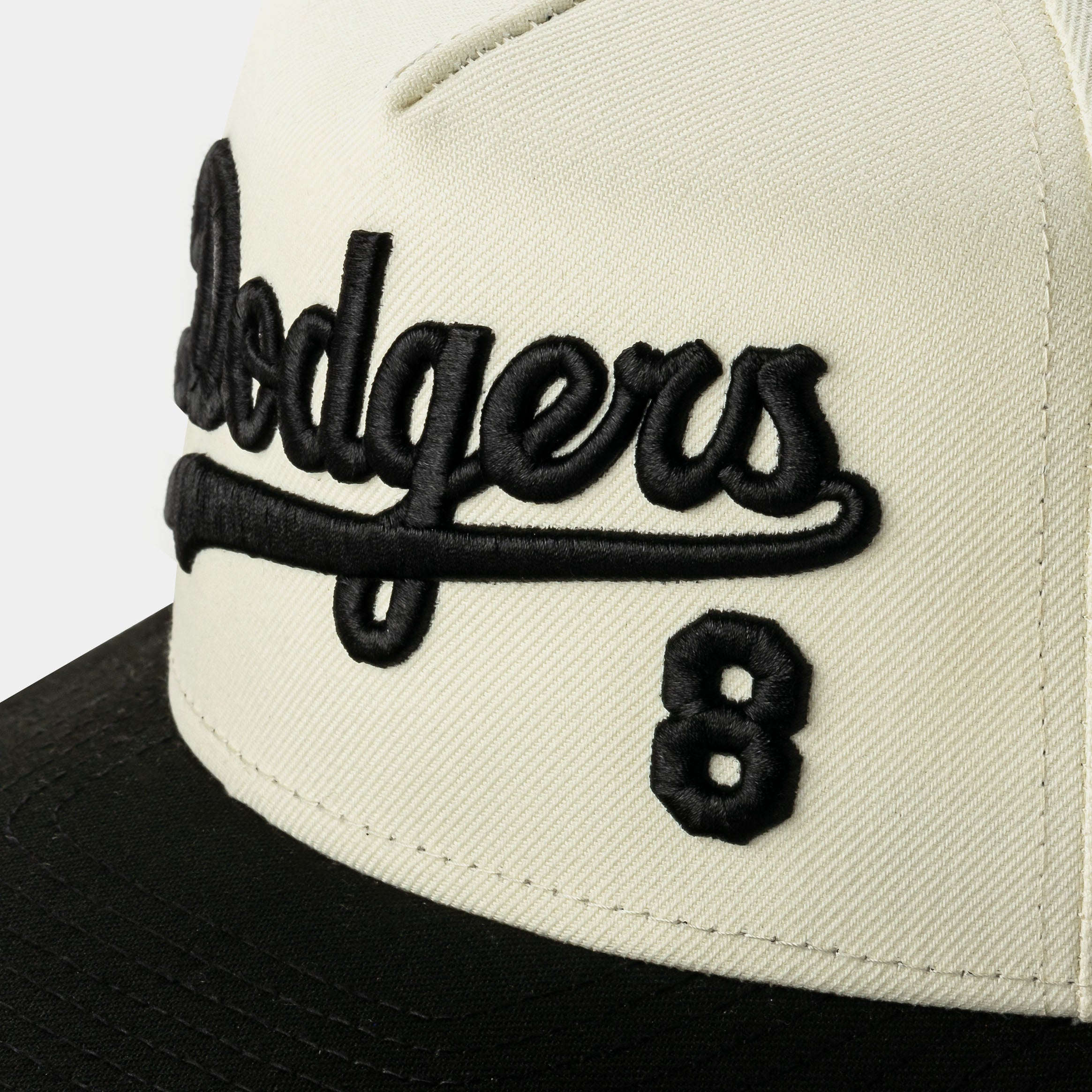 Rep the City of Angels in elevated style with this Los Angeles Dodgers Two-Tone 9FIFTY Snapback. Featuring a cream crown paired with a black visor, this cap puts a clean and modern spin on classic team colors. The Dodgers script logo is embroidered across the front in bold black, complemented by the number 8 detail for an exclusive finish. Inside, a gray undervisor adds contrast, while the snapback closure ensures a custom, comfortable fit. This piece is the perfect balance of heritage and streetwear flair—ideal for game day or everyday wear.
