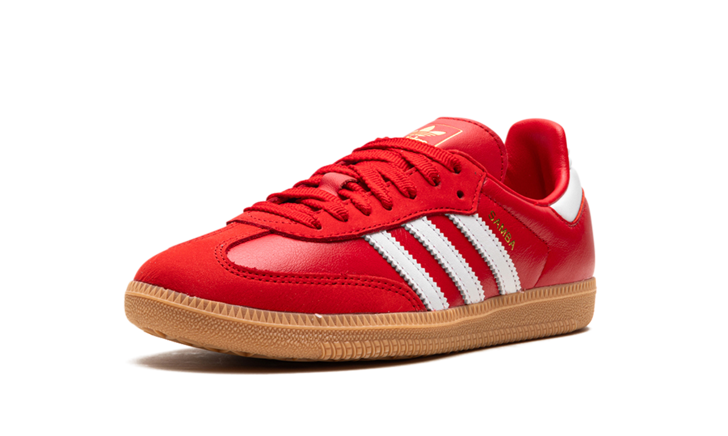 The adithtdas Samba OG "Better Scarlet" (W) reimagines a classic with a striking red hue. Its vibrant upper, paired with crisp white stripes, delivers a bold visual impact. The iconic silhouette retains its timeless appeal, while the rich scarlet elevates its style. A traditional rubber sole ensures lasting comfort and a grounded look. This women's edition breathes new life into the Samba OG, offering a modern twist on a beloved design. The "Better Scarlet" is a statement piece, blending heritage with contemporary flair.