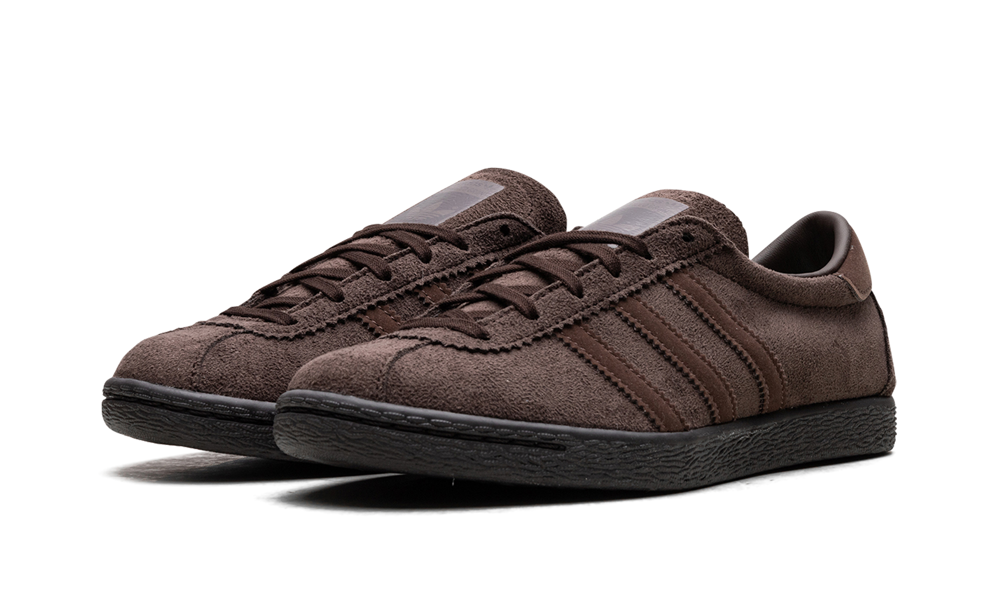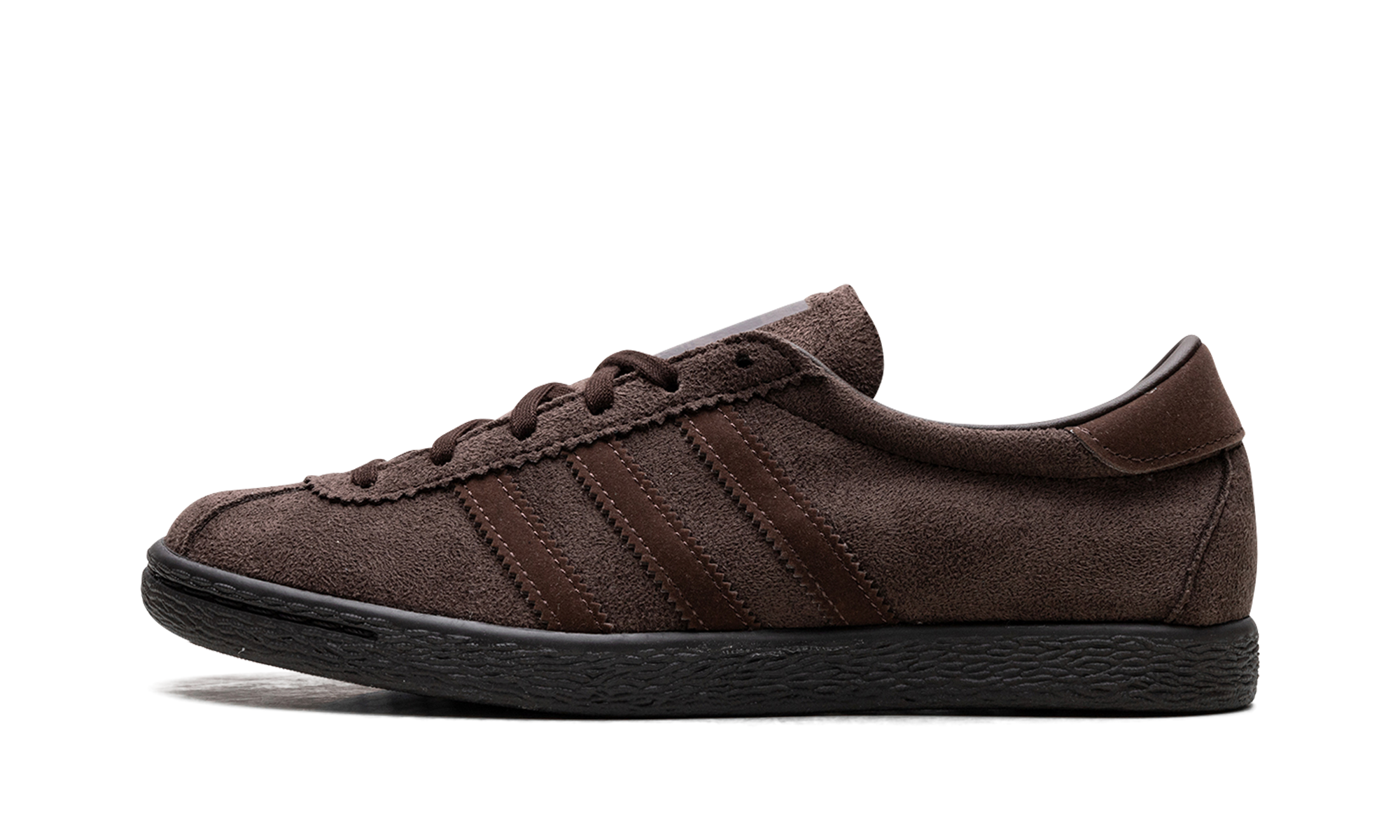 The adithtdas Tobacco Gruen "Dark Brown" is a heritage sneaker that revives a classic look with a focus on sustainable materials. The shoe features a rich, dark brown suede upper, complemented by tonal three-stripes and a heel tab. It sits atop a recycled gum rubber cup sole, aligning with adithtdas's commitment to eco-conscious design ("Gruen" means green in German). This low-profile shoe delivers a minimalist, sophisticated aesthetic with a comfortable feel, perfect for those who appreciate vintage style and environmental responsibility.