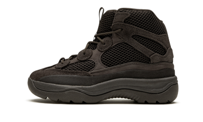 The Yeethtzy Desert Boot “Oil” in kids’ sizing is made for any and all adventures. With an entirely black construction, these boots are both stylish for everyday wear, and functional for traversing any terrain. The all-black upper is made of breathable mesh to keep things fresh, with stylish suede accenting the construction. A single gray stripe adorns a strip along the tongue that leads to a loop for easy on-and-off. An all-black rubber outsole and midsole provide grip from the streets to the playground.