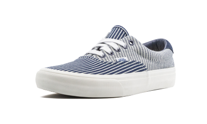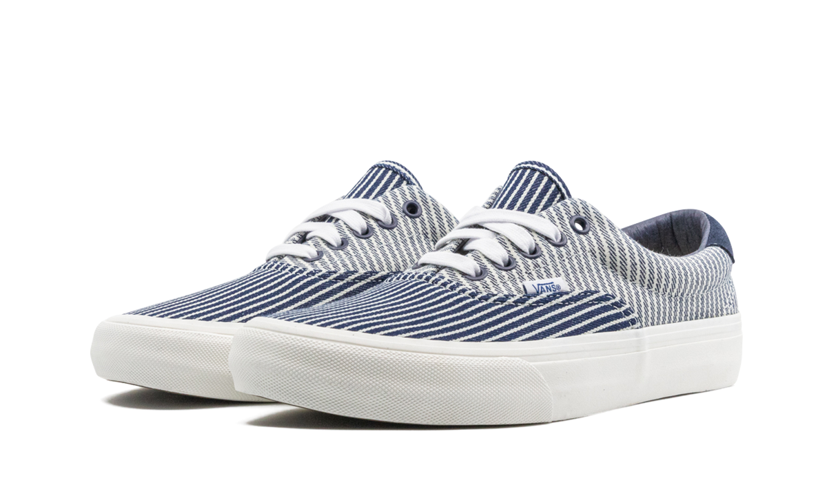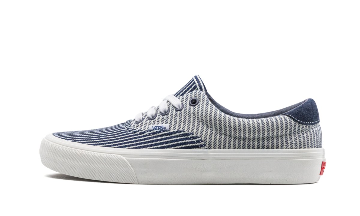 The Mount Vernon Mills x Vathtns Vault Era 59 LX is a collaborative project that brings together America's oldest denim mill with the California skate brand. One of three Vathtns silhouettes dressed in workwear fabric, the Era 59 is reimagined with hickory-striped denim reminiscent of the uniforms worn by railroad or car shop workers. The striped pattern is darker near the front of the shoe, while the back is occupied by a distressed, lighter shade. The shoe comes complete with a clean white sole and matching laces.