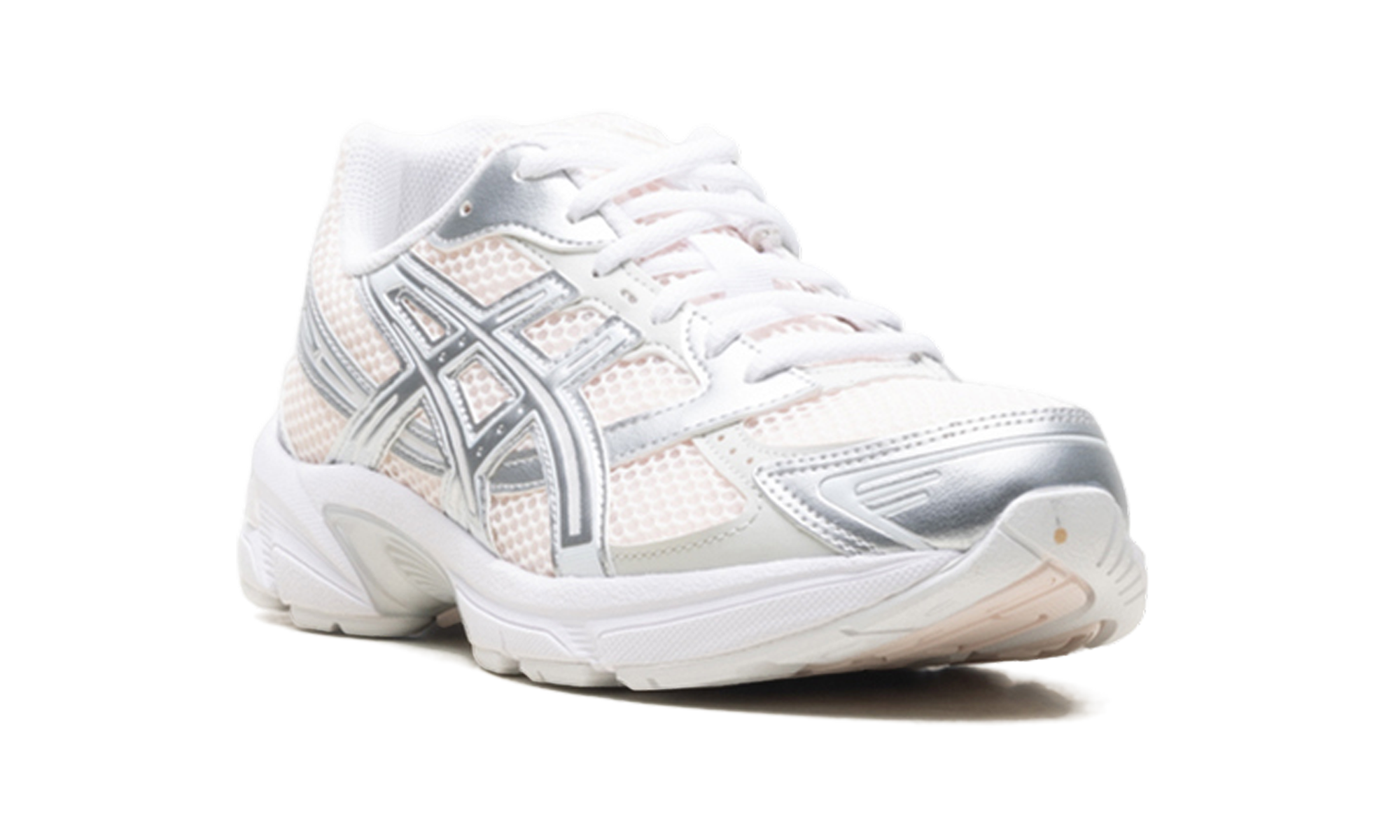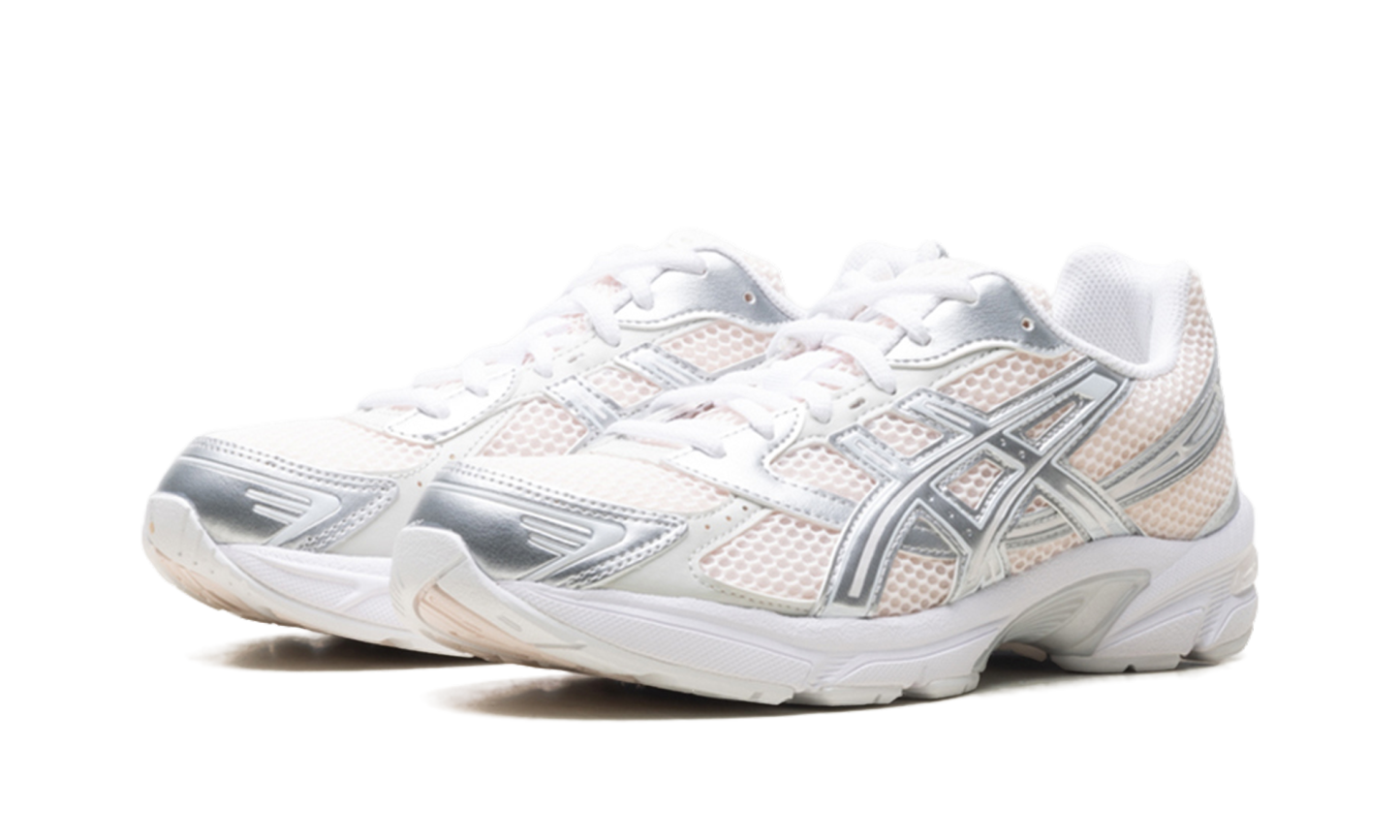 The GEL-1130 "Blush" pairs archival Y2K running DNA with a soft, monochromatic aesthetic, featuring a breathable open-mesh base in a delicate "Blush" pink. This tonal foundation is sharply contrasted by premium synthetic leather overlays in shimmering "Pure Silver," providing a technical, liquid-metal strike to the streamlined profile. Utilizing the signature GEL™ technology in the heel for superior shock absorption and a TRUSSTIC™ support system for specialized stability, the ninth iteration of the GEL-1000™ series remains a favorite for its performance-driven comfort. Grounded by a crisp white midsole and a tonal pink outsole, this release successfully blends heritage athletic utility with a refined, contemporary colorway.