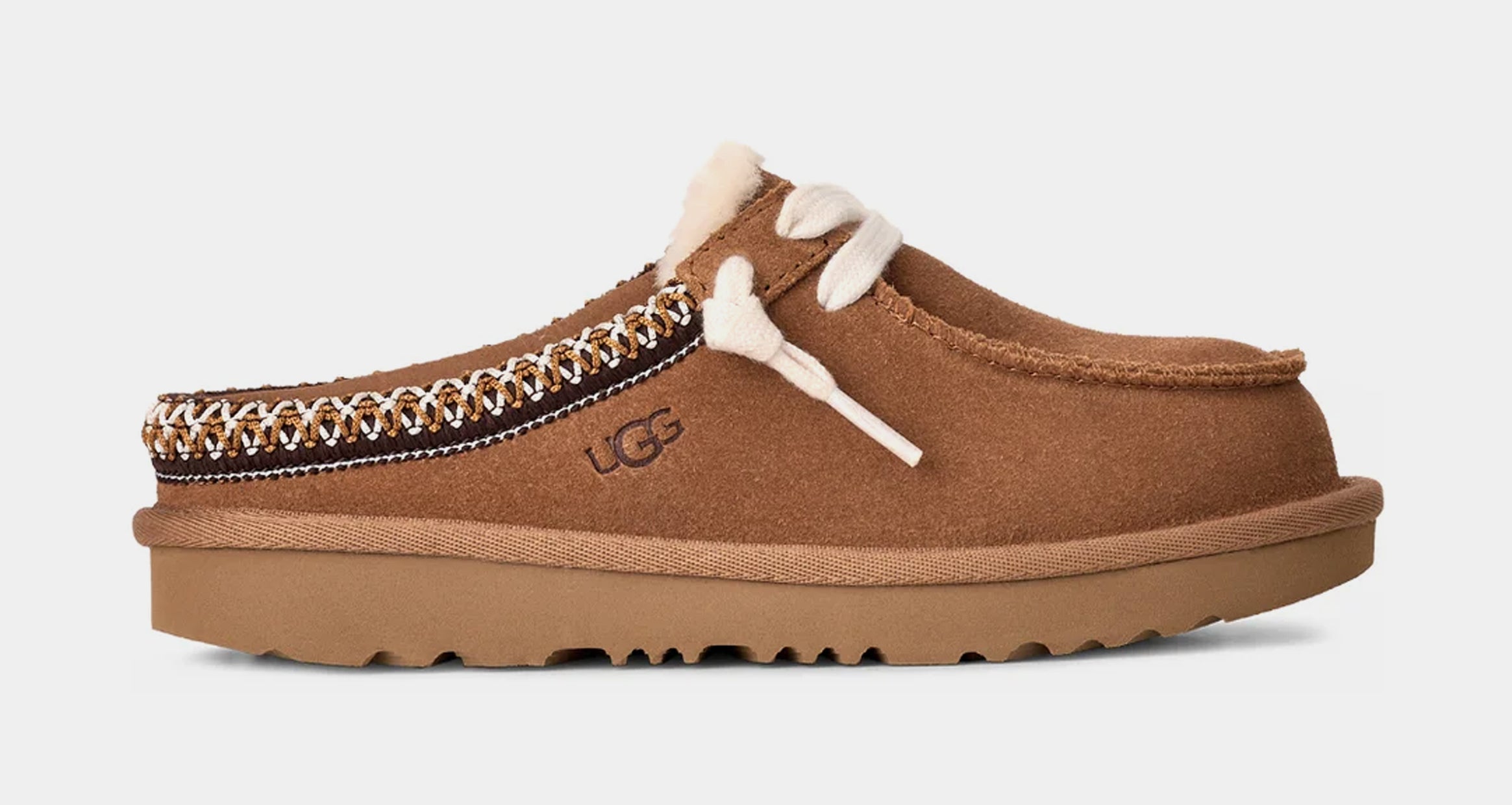 A lace-up design adds sporty appeal to this kid-size mule lined with warm UGthtGplush™, a moisture-wicking textile made from a wool-rich blend but crafted to feel and wear like genuine shearling